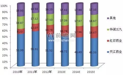 2010-2015年中藥配方顆粒競爭格局(單位:%)