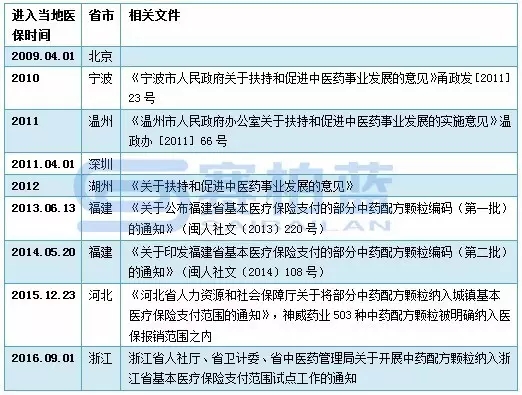 已進(jìn)入醫(yī)保的還有重慶、安徽、廣州等地,而山西、廣東、福建等省參照中藥飲片政策對配方顆粒給予報(bào)銷。