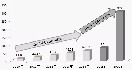 2010-2020 年中藥配方顆粒市場規(guī)模預(yù)測(單位:億元)