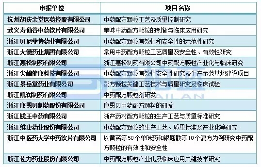 此外,僅浙江一省申報(bào)申報(bào)中藥配方顆粒科研專項(xiàng)的企業(yè)就達(dá)13家之多(詳見下表),《關(guān)于申報(bào)浙江省中藥配方顆??蒲袑m?xiàng)的通知》(浙衛(wèi)發(fā)〔2015〕69號)項(xiàng)目公示表