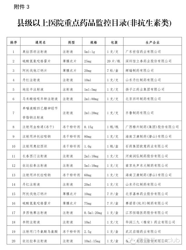3.縣級(jí)以上醫(yī)院重點(diǎn)藥品監(jiān)控目錄(非抗生素類)