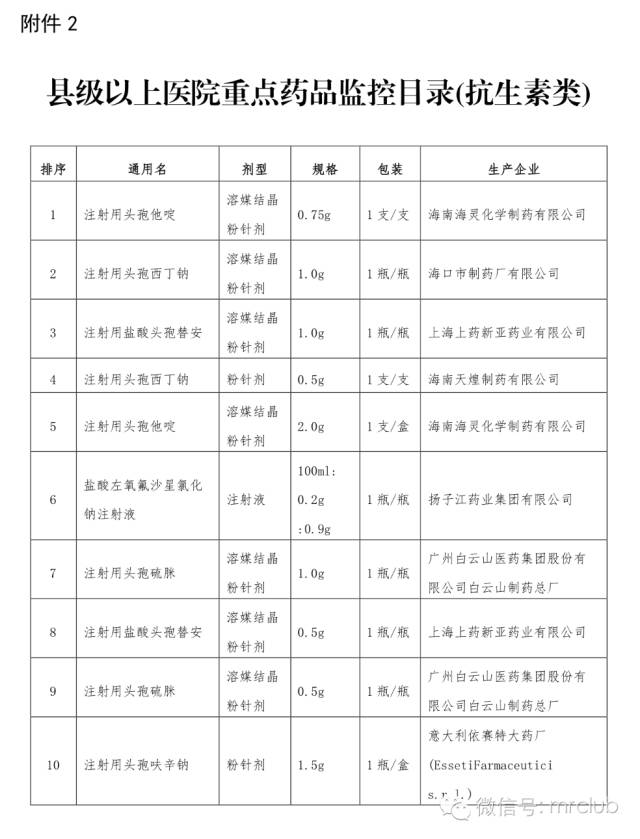 2.縣級(jí)以上醫(yī)院重點(diǎn)藥品監(jiān)控目錄(抗生素類)