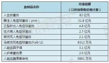 血液制品發(fā)展至今,已列入2000年版“中國生物制品規(guī)程”的制品有靜脈注射用人免疫球蛋白(俗稱靜丙)、特異性免疫球蛋白、組織胺人免疫球蛋白、人凝血因子Ⅷ、人凝血酶原復合物、肌注人免疫球蛋白、抗人淋巴細胞免疫球蛋白、狂犬病人血白蛋白、破傷風免疫球蛋白、人纖維蛋白原、乙型肝炎人免疫球蛋白、人胎盤血白蛋白。正在進行臨床研究的制品有凍干人凝血酶、抗凝血酶-Ⅲ、外用凍干人纖維蛋白粘合劑等等。