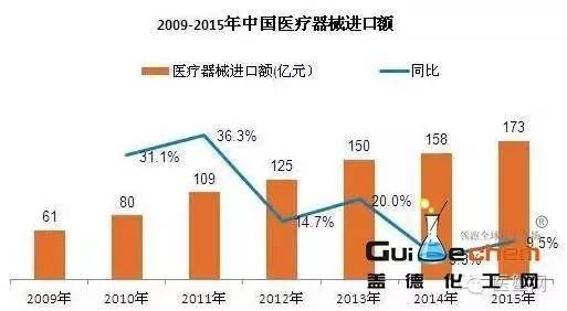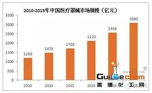 2015年,我國醫(yī)療器械市場規(guī)模約為3080億元,比上一年增長了524億元,年均增長率約為20%左右。隨著我國人口老齡化的加劇以及扶持政策 力度加大,醫(yī)療器械市場規(guī)模正不斷擴張。其中,作為骨科和心血管所需的介入器材、植入器材和人工器官等高附加值消耗醫(yī)療材料,將迎來快速增長機遇。機構預 計,到2018年,我國骨科植入耗材和心血管支架耗材市場規(guī)模將分別達到212億元和388億元。