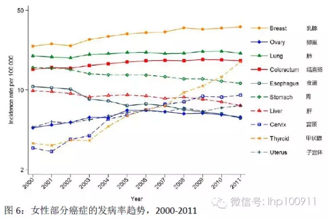 女性甲狀腺癌的增加與其他國(guó)家相類(lèi)似;盡管這可能與各種新技術(shù)的使用導(dǎo)致的過(guò)度診斷有關(guān),但由于缺少疾病階段的信息,也不能排除發(fā)病率確實(shí)在增加的可能性。