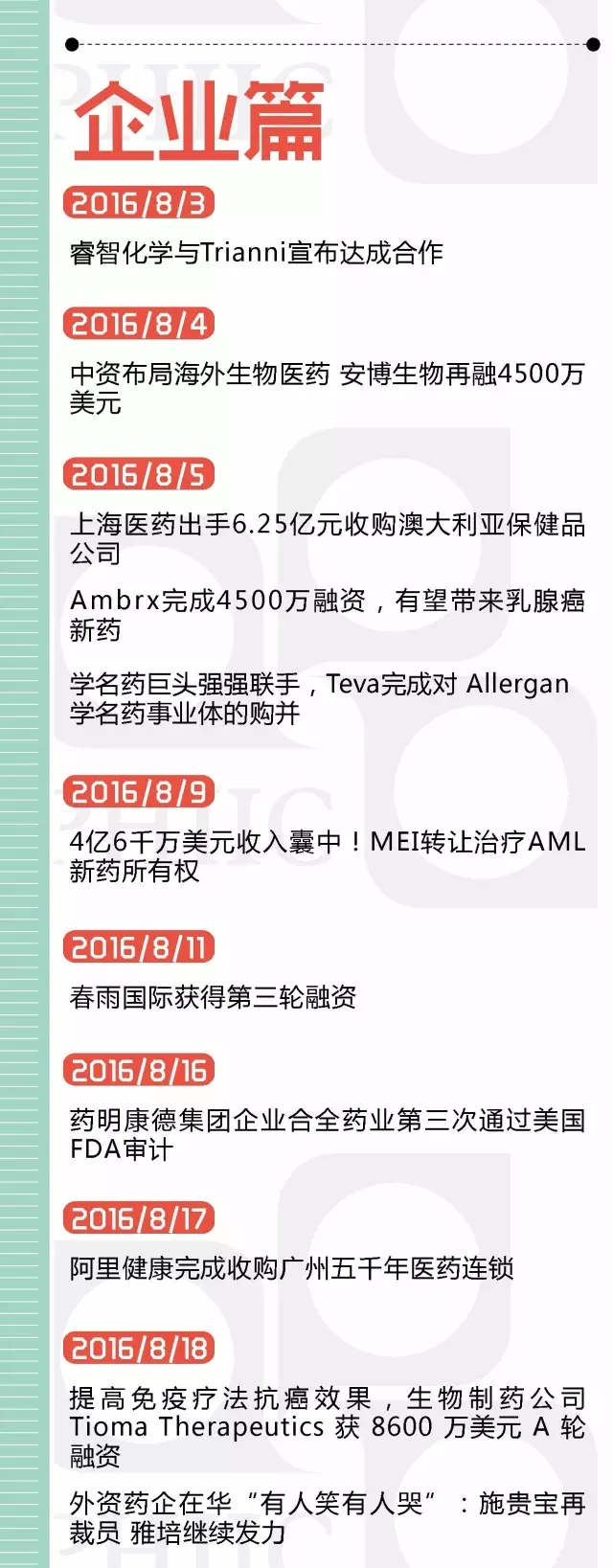 【數(shù)圖說】2016年8月醫(yī)藥行業(yè)大事件回顧
