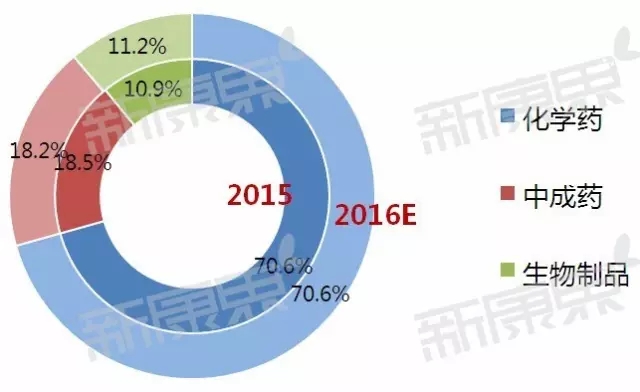 預(yù)計2016年化藥的市場份額基本保持不變,生物制品市場份額持續(xù)增長,中成藥市場份額小幅下滑。