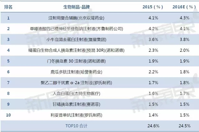 等級醫(yī)院TOP10生物制品品牌銷售額份額排行榜