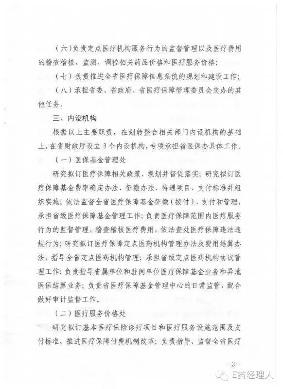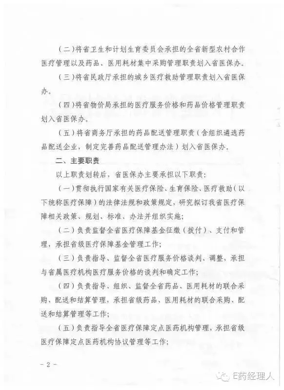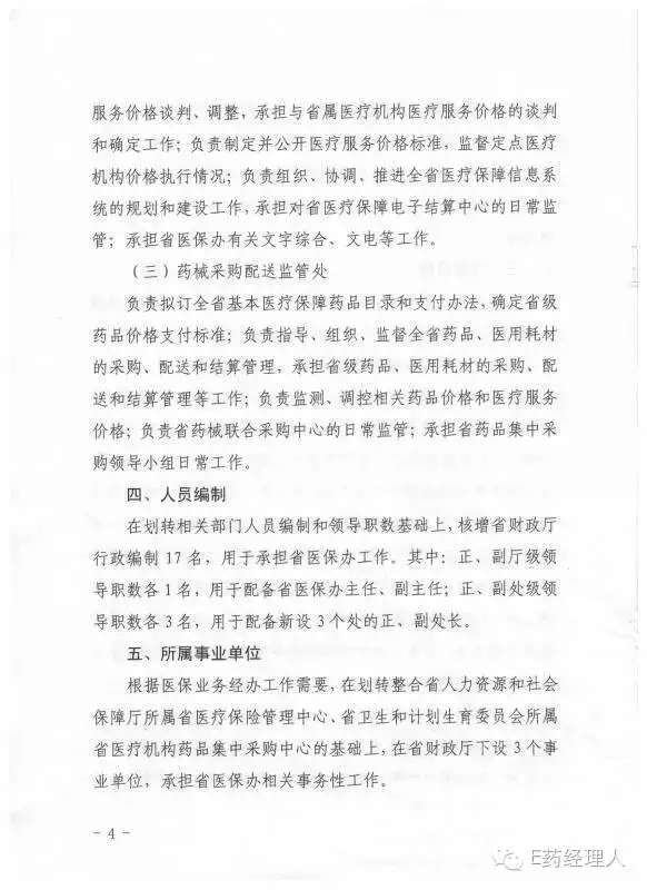 二、將省衛(wèi)生和計劃生育委員會承擔的全省新型農(nóng)村合作醫(yī)療管理以及藥品、醫(yī)用耗材集中采購管理職責劃入省醫(yī)保辦。