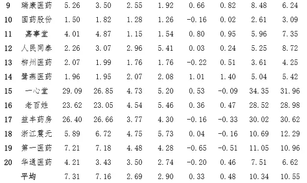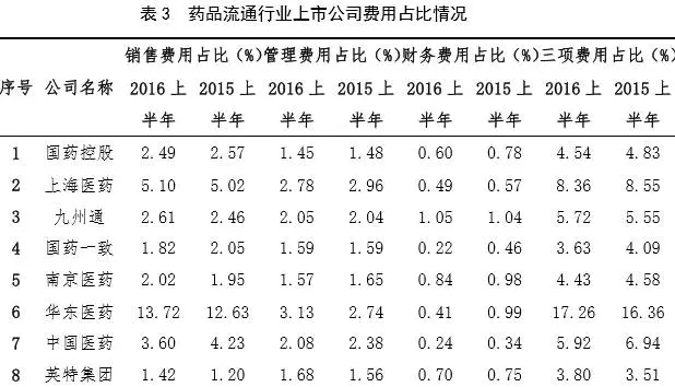 據(jù)統(tǒng)計(jì),2016 年上半年藥品流通行業(yè) 20 家上市公司主營(yíng)業(yè)務(wù)收入總和為 3153 億元,同比增長(zhǎng) 16.0%;凈利潤(rùn)為 99.7 億元,同比增長(zhǎng) 27.4%;平均毛利率為 15.2%,同比略有下降;平均凈利率為 3.7%,同比基本持平;平均費(fèi)用率為 10.3%,同比略有下降。