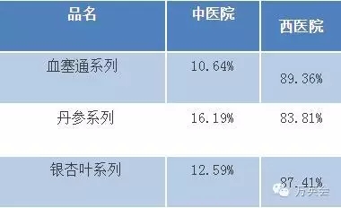 表二典型中藥廣州地區(qū)西醫(yī)院、中醫(yī)院銷量分布