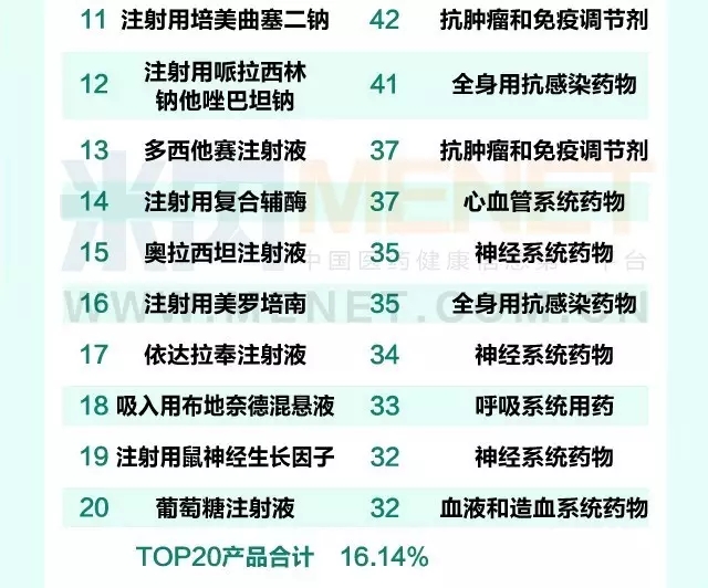 全國城市醫(yī)院用藥前20名產(chǎn)品