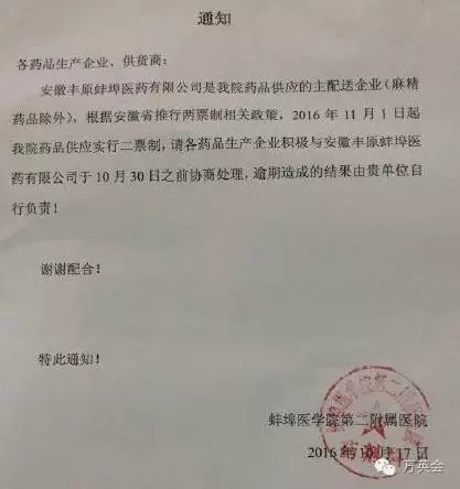 兩票制正式落地!又有多家醫(yī)院發(fā)執(zhí)行通知!
