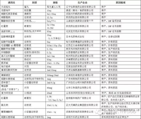 已停產(chǎn)或暫時(shí)停產(chǎn)類藥品一覽表