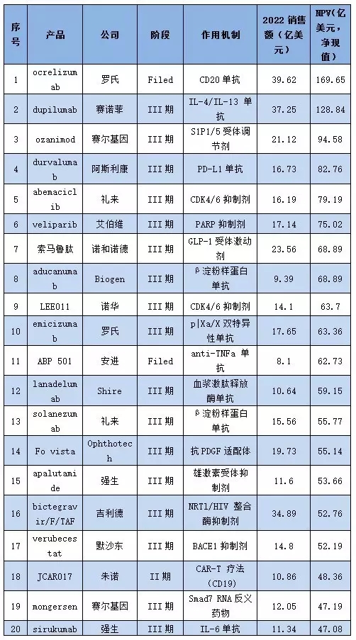 結(jié)合之前IMS發(fā)布的全球暢銷藥TOP20榜單和World Preview 2016,Outlook to 2022在研藥品最具價(jià)值榜單來看看,未來哪些公司的哪些藥品將會(huì)成為重磅炸彈藥品的“候選人”。