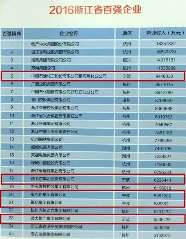 2016浙江省百?gòu)?qiáng)企業(yè)榜單發(fā)布!寧波有22家企業(yè)上榜