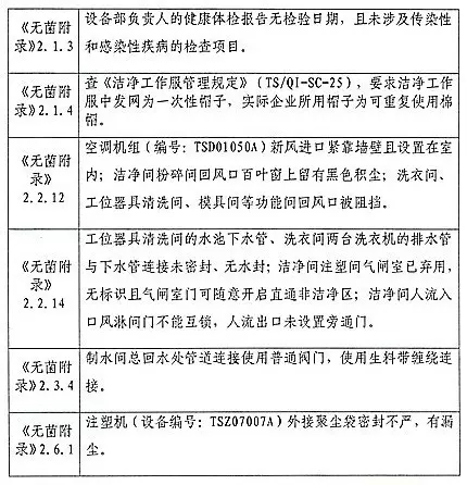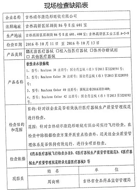 吉林瑞爾康隱形眼鏡有限公司現(xiàn)場檢查缺陷表