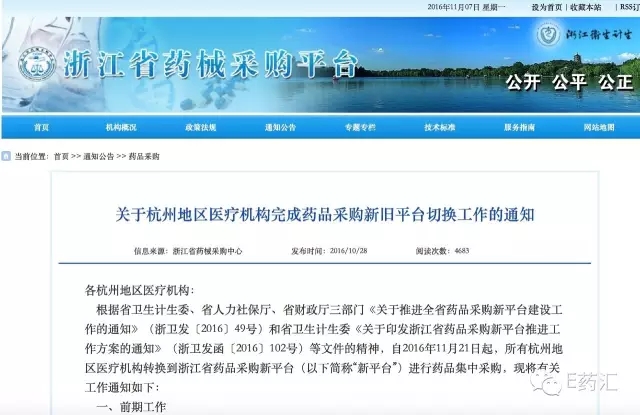 30天付款,兩票制,浙江啟用藥品采購新平臺(tái)