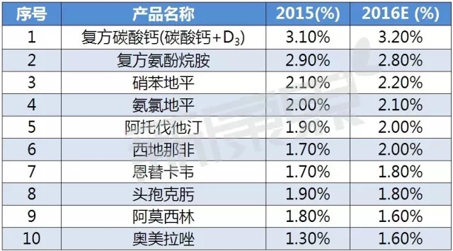 在鈣制劑產(chǎn)品中,碳酸鈣是當(dāng)前同等質(zhì)量產(chǎn)品中鈣含量最高的,因而市場(chǎng)一路走高。中康CMH數(shù)據(jù)顯示,2015年零售市場(chǎng)化學(xué)藥銷(xiāo)售達(dá)1124億元,其中,復(fù)方碳酸鈣(碳酸鈣+維生素D3)以3.1%的市場(chǎng)份額成為化學(xué)藥暢銷(xiāo)產(chǎn)品排行榜第一名。