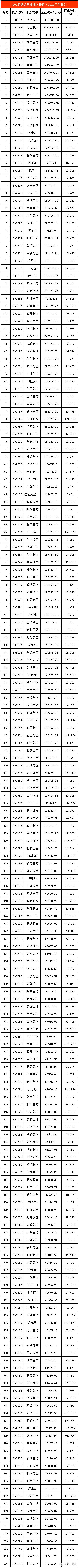 根據(jù)東方財(cái)富網(wǎng)數(shù)據(jù),醫(yī)藥地方臺(tái)統(tǒng)計(jì)出已發(fā)布2016年三季報(bào)的206家上市醫(yī)藥企業(yè)(不完全統(tǒng)計(jì),歡迎補(bǔ)充)!