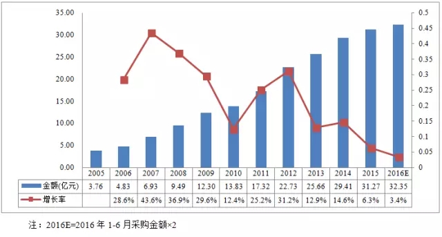 據(jù)中國醫(yī)藥工業(yè)信息中心PDB數(shù)據(jù),約有44個(gè)抗病毒藥品種(包括中成藥)進(jìn)入重點(diǎn)城市樣本醫(yī)院的采購,采購金額走勢(shì)如下圖3。2005年至2015年,年復(fù)合增長(zhǎng)率為23.6%,近兩年增速放緩。