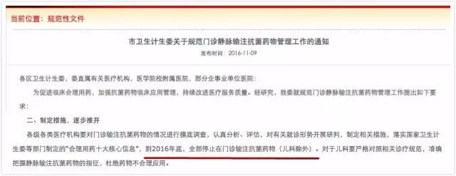 日前,天津市衛(wèi)生計生委發(fā)文,要求在今年年底前,全市各級各類醫(yī)療機(jī)構(gòu)全部停止門診輸注抗菌藥物(兒科除外)。