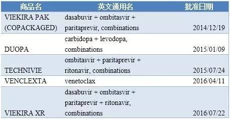 表1 2013-2016年艾伯維美國上市藥品一覽