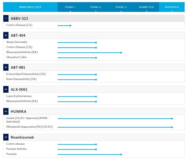 2013年,艾伯維從雅培的制藥板塊中剝離出來,成為一家獨立的研究型制藥公司。從雅培拆分出來的艾伯維更精準定位于包括丙型肝炎(HCV)、神經(jīng)科學、免疫學、腫瘤學、腎病以及女性健康的新藥研發(fā)。2013年開始,艾伯維加速其研發(fā)進展,陸續(xù)在歐美上市了7個產(chǎn)品(表1、2),其中大部分為丙型肝炎治療藥物。