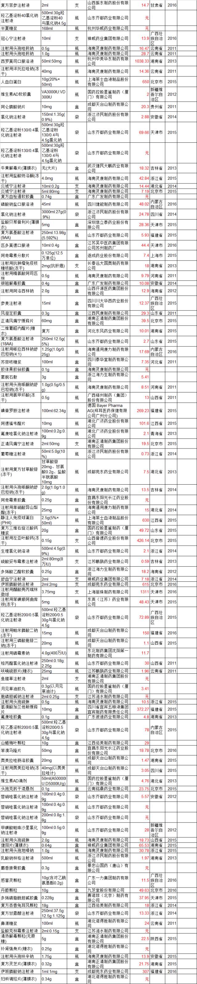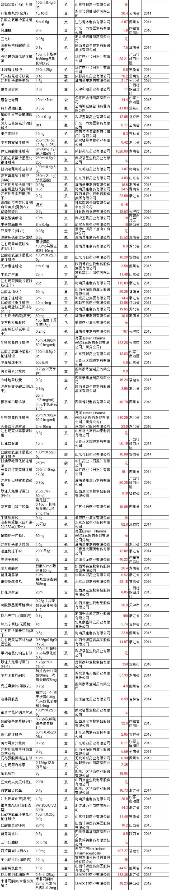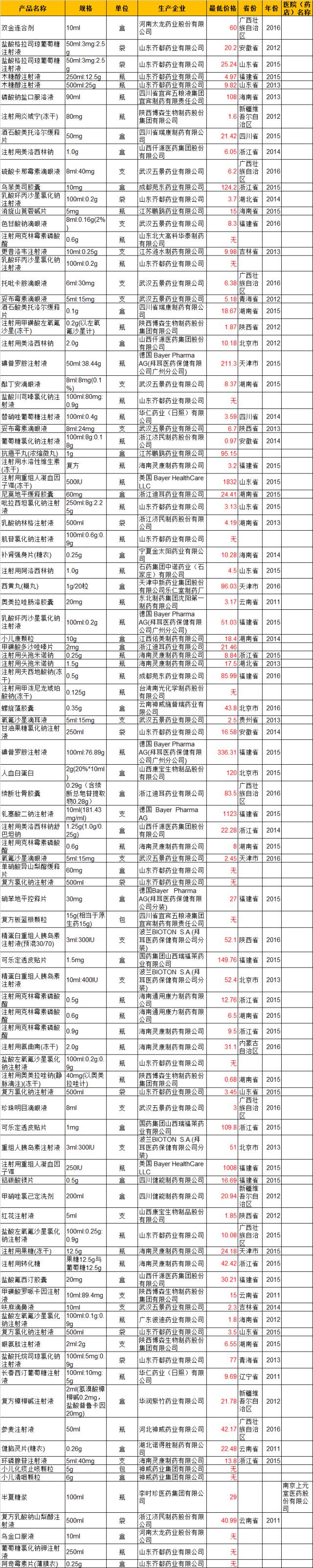 附表共有18179條全國最低價信息,限于篇幅未能全列,如需要完整Excel版者請點擊文章底部閱讀原文提交電子郵箱,系統(tǒng)自動推送。
