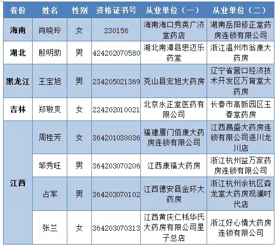 以下是各省撤銷從業(yè)藥師資格的名單: