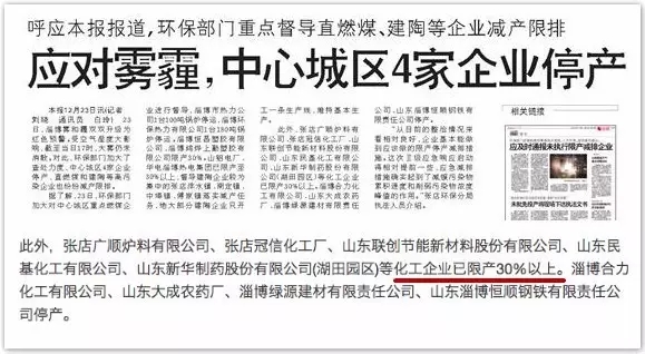 健識君注意到,霧霾逐漸加重后,污染企業(yè)停產(chǎn)、限產(chǎn)是重要治污手段。去年,霧霾嚴重的情況下,山東新華制藥股份有限公司(湖田園區(qū))等化工企業(yè)已限產(chǎn)30%以上,隨著霧霾逐漸加重,是否會有越來越多企業(yè)因霧霾被停產(chǎn)、限產(chǎn),健識局會進一步關(guān)注。