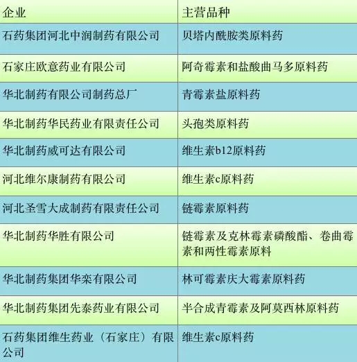 下面是被列入停產(chǎn)名單的石家莊原料藥企業(yè)及其主要品種,里面有您的供應商嗎?