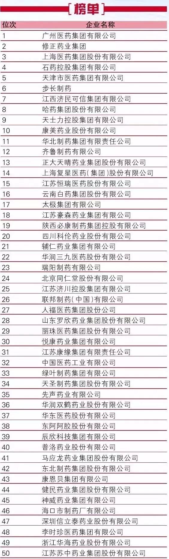 昨日晚間,由《醫(yī)藥經(jīng)濟(jì)報(bào)》主辦的第11屆中國(guó)制藥百?gòu)?qiáng)發(fā)布儀式于廣州白云國(guó)際會(huì)議中心舉行,會(huì)上對(duì)中國(guó)制藥工業(yè)百?gòu)?qiáng)進(jìn)行了正式揭榜,具體名單如下: