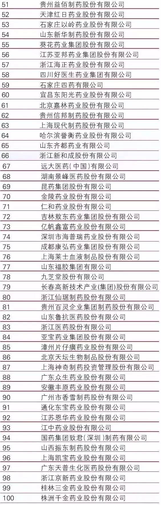 2015-2016年度中國(guó)制藥工業(yè)百?gòu)?qiáng)公布(南方所版)