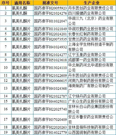 附件:氯美扎酮原料藥及其制劑生產(chǎn)企業(yè)名單