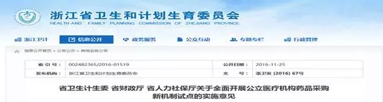 25日,浙江省衛(wèi)生計(jì)生委、省財(cái)政廳和省人力社保廳掛網(wǎng)發(fā)文,公布《關(guān)于全面開展公立醫(yī)療機(jī)構(gòu)藥品采購新機(jī)制試點(diǎn)的實(shí)施意見》。