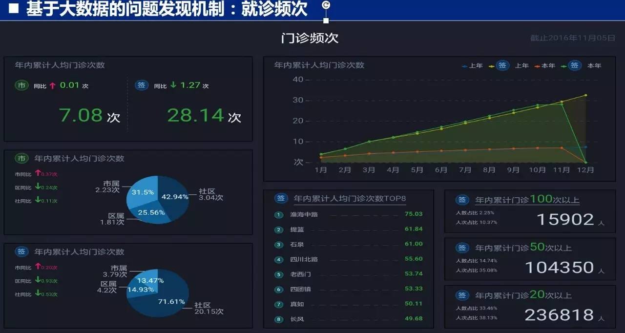 在此基礎(chǔ)上,上海新醫(yī)改基于大數(shù)據(jù)和標(biāo)準(zhǔn)可建立預(yù)估模型,可以通過(guò)醫(yī)療總指數(shù)、指數(shù)單價(jià)、發(fā)病率和技術(shù)發(fā)展,可預(yù)估出上海的醫(yī)療總費(fèi)用,并可細(xì)化到的不同維度。許速介紹說(shuō),通過(guò)實(shí)時(shí)監(jiān)測(cè),今年1月到11月,上海市的平均就診人次是7.05次,而紐約的這個(gè)數(shù)值是4.5次。又如,這11個(gè)月間,上海簽約家庭醫(yī)生的人口的平均就診人次高達(dá)28.1次,這預(yù)示著公共資源的使用不盡合理,這些事實(shí)在大數(shù)據(jù)面前很清晰,也為上海新醫(yī)改要具體解決的問(wèn)題指明了癥結(jié)所在。