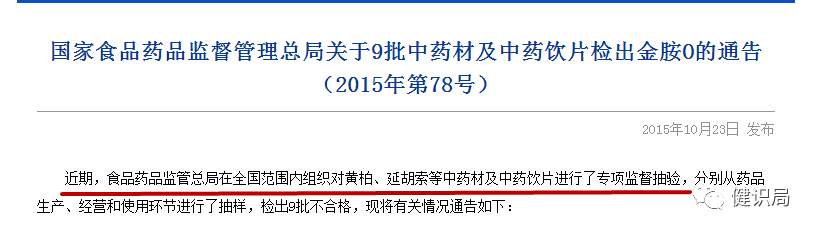 據(jù)健識局了解,中藥材一直是食藥監(jiān)總局的重點抽查對象。
