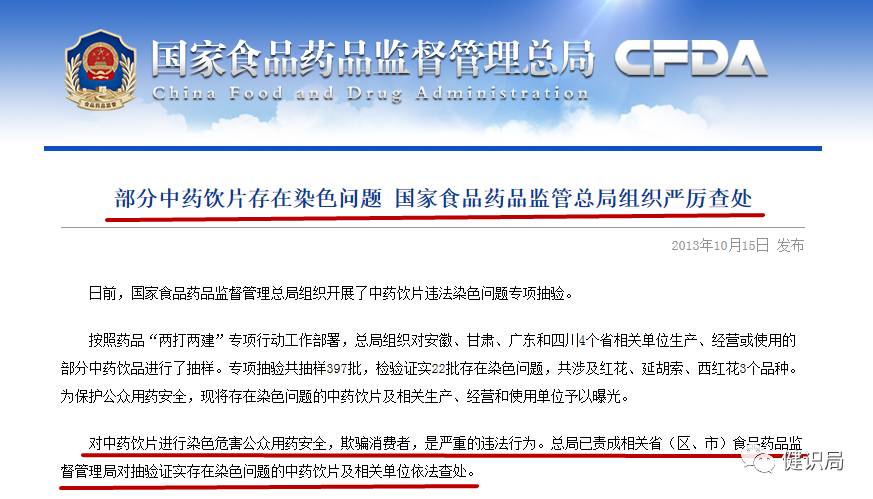 目前,當?shù)厥称匪幤繁O(jiān)督管理部門正在調查上述問題是企業(yè)購進的中藥飲片質量問題還是企業(yè)違法添加所致。