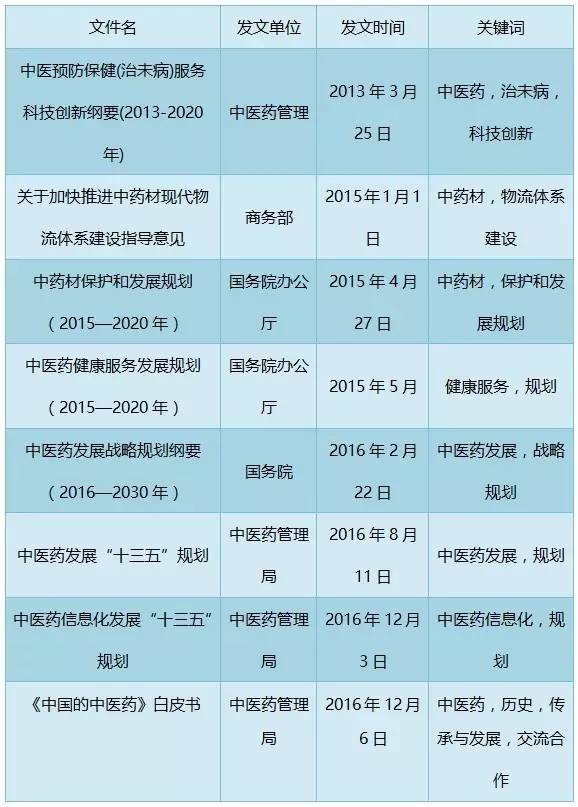 筆者將近兩年來我國中醫(yī)藥行業(yè)發(fā)展相關扶持政策搜集整理如下,以發(fā)布時間先后順序排列,以饗讀者。