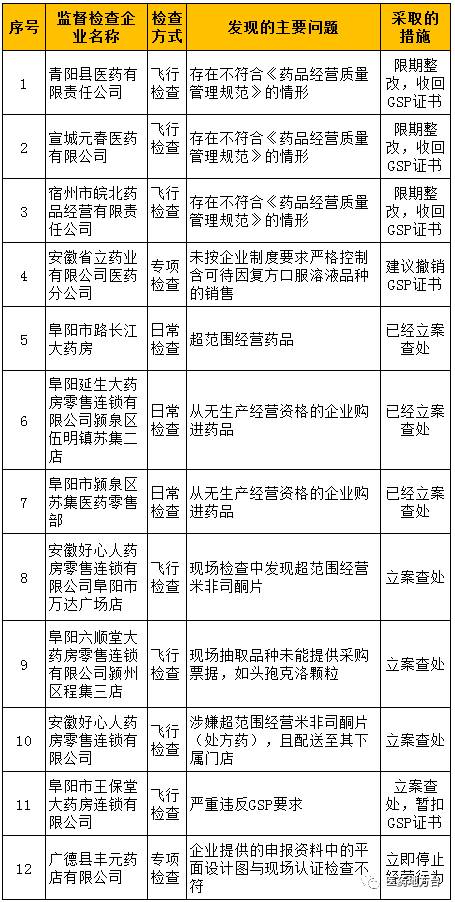 12月12日,安徽省藥監(jiān)局通告2016年11月藥品流通監(jiān)督檢查信息,681家藥企因存在相關問題,分別被處以收回GSP、立案查處、整改等處罰。