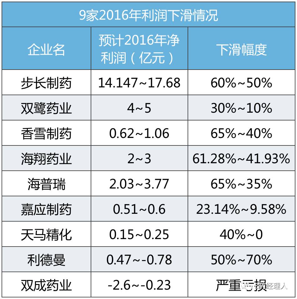 2016最新業(yè)績(jī)揭底,這9家藥企緣何出現(xiàn)利潤(rùn)大下滑?