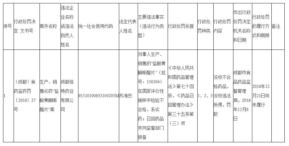 成都倍特藥業(yè)生產(chǎn)銷售劣藥被查處