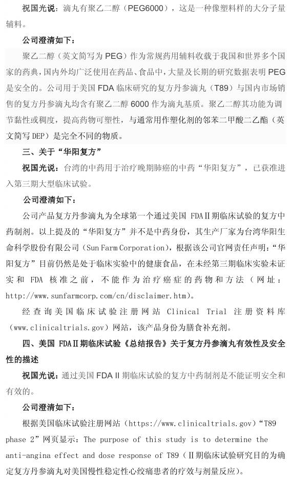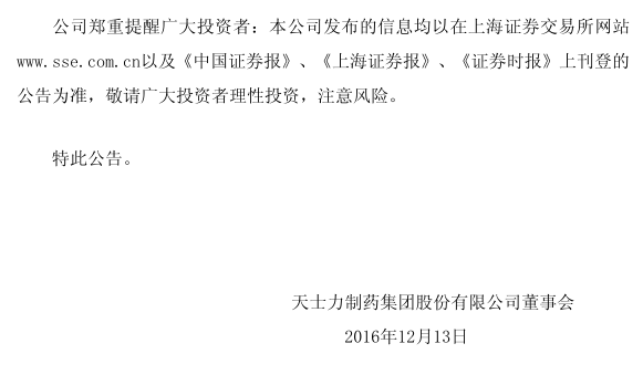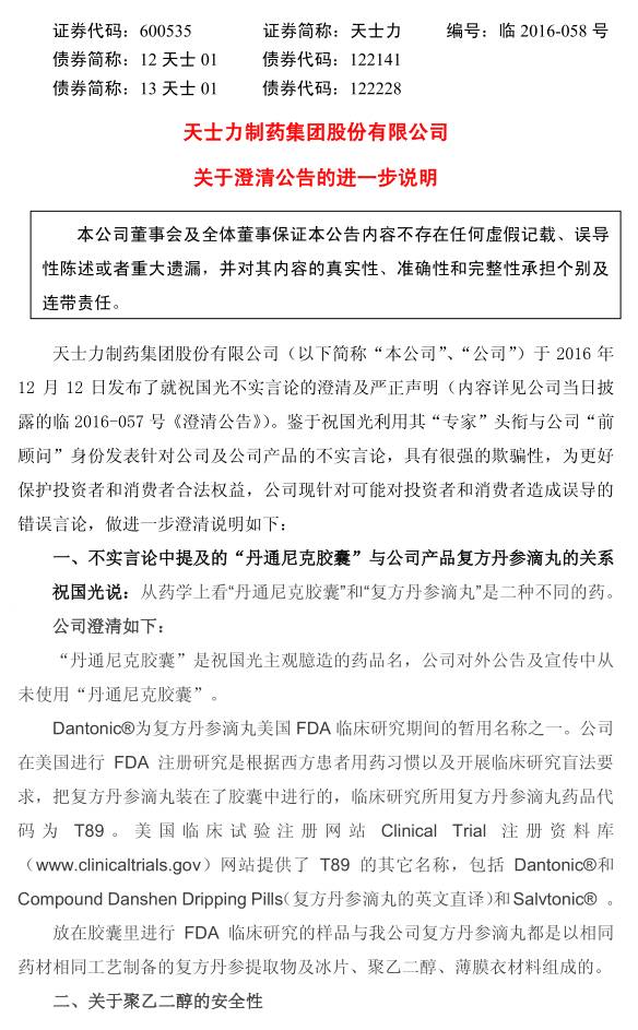 天士力再次公告澄清傳聞