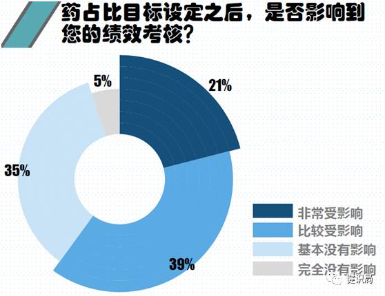 因此藥占比目標(biāo)設(shè)定之后,除了對(duì)醫(yī)生的處方影響外,還會(huì)影響到其績(jī)效。65%的醫(yī)生表示績(jī)效“比較或非常受影響”,僅3成醫(yī)生表示“基本或完全沒有影響”。