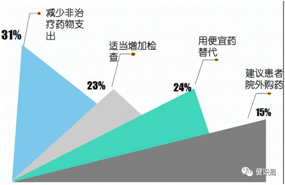 在這些方式中,各科室做法略有差異:兒科醫(yī)生更多選擇“適當(dāng)增加檢查”,婦產(chǎn)科、心內(nèi)科、呼吸內(nèi)科、普外科醫(yī)生更多選擇“減少非治療藥物支出”,內(nèi)科、消化內(nèi)科則更多選擇“用便宜藥替代”。