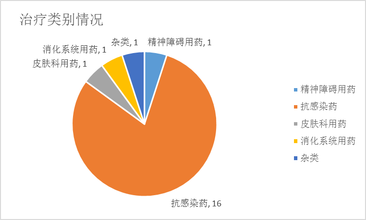 2016年11月份,CFDA共批準(zhǔn)藥品上市申請20件,以批準(zhǔn)文號/注冊證號計。其中,國產(chǎn)化學(xué)藥品17件,生物制品1件,進(jìn)口化學(xué)藥品2件。其中,16件抗感染藥,精神障礙用藥、皮膚科用藥、消化系統(tǒng)用藥均為1件。