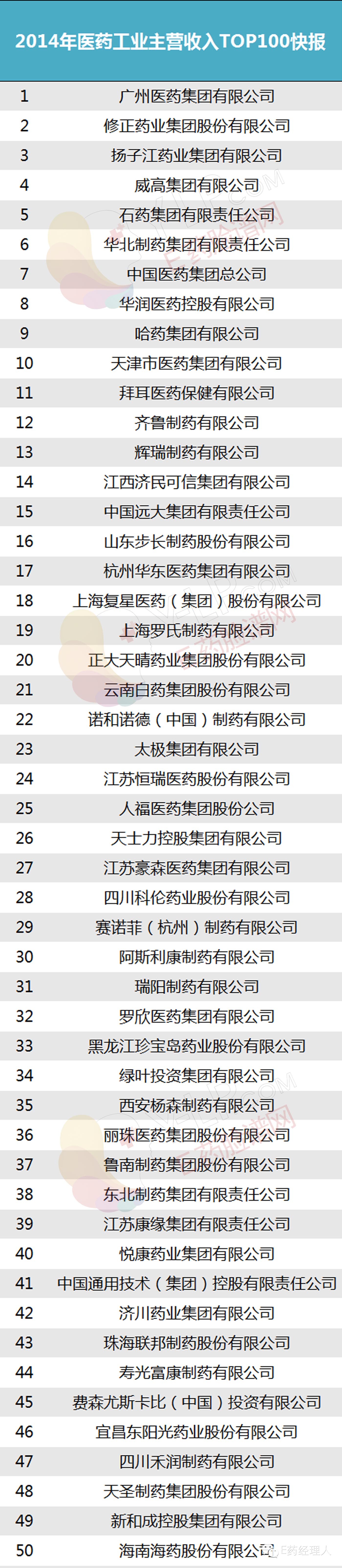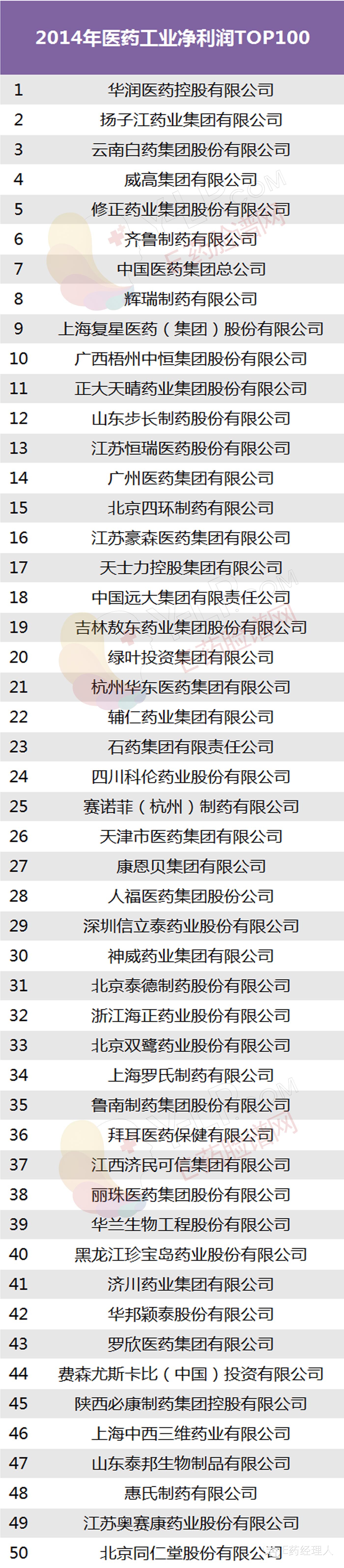 誰賺得最多?誰最大?2014年度醫(yī)藥工業(yè)排名TOP100快報(bào)