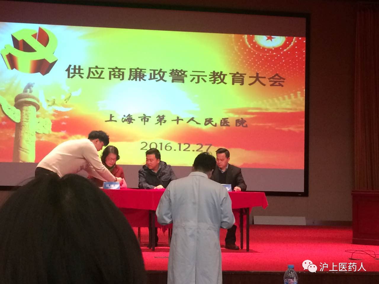 12月27日,為了加強醫(yī)療衛(wèi)生行業(yè)建設,規(guī)范醫(yī)療衛(wèi)生機構(gòu)醫(yī)藥購銷行為,有效規(guī)范商業(yè)賄賂行為,營造公平交易、誠實守信的購銷環(huán)境,上海市第十人民醫(yī)院黨委、紀委組織召開“2016年度供應商廉潔誠信警示教育大會”,邀請與本院藥品、試劑、設備、耗材、物資、信息等有采購、經(jīng)銷關系的企業(yè)的法人或法人授權(quán)人,參與本次會議。本次會議涉及廠商1500余家家,到會人數(shù)400余人。