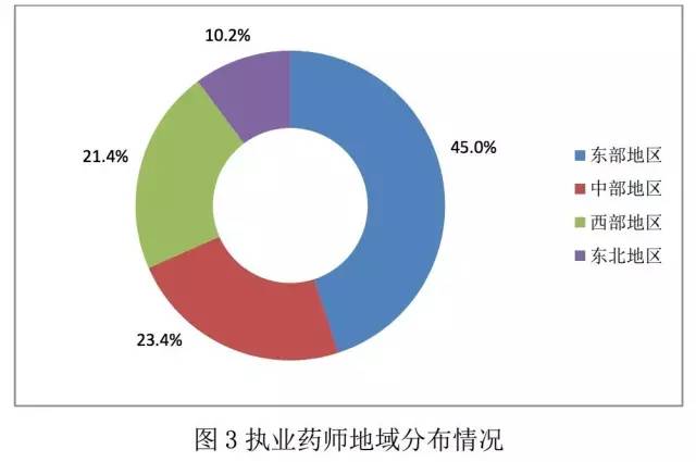 執(zhí)業(yè)藥師按區(qū)域分布情況:東部地區(qū)154017人,中部地區(qū)79884人,西部地區(qū)73218人,東北地區(qū)34990人,分別占注冊總數(shù)45.0%、23.4%、21.4%、10.2%。